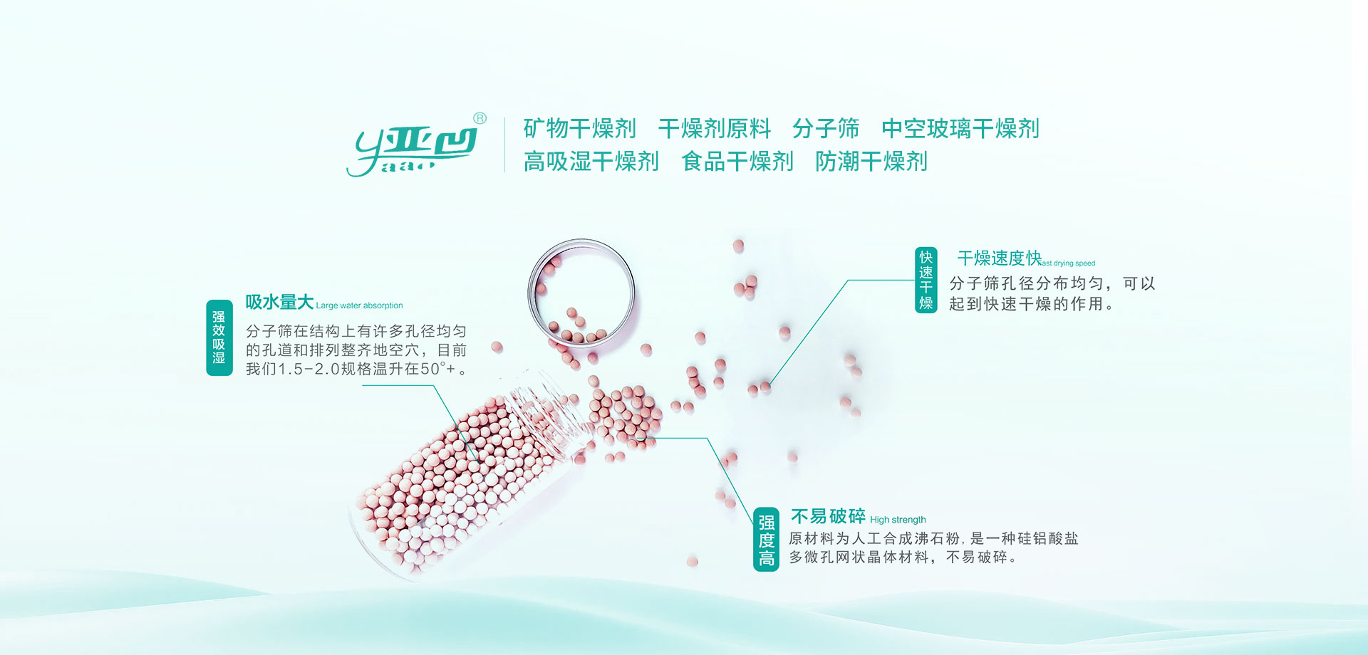 2010年,公司確立剝離非核心業(yè)務(wù),專門從事中空玻璃分子篩的研發(fā)、生產(chǎn)和銷售,公司現(xiàn)主營(yíng)產(chǎn)品包括中空玻璃干燥劑,百葉中空玻璃干燥劑,食用油脫色劑,汽車剎車干燥劑等,產(chǎn)品廣泛應(yīng)用于玻璃制品、汽車零部件、鞋帽、服裝、箱包、食品等行業(yè),具有無(wú)毒、無(wú)味、無(wú)腐蝕性、性能穩(wěn)定、綠色環(huán)保、吸附性強(qiáng)等特點(diǎn)。